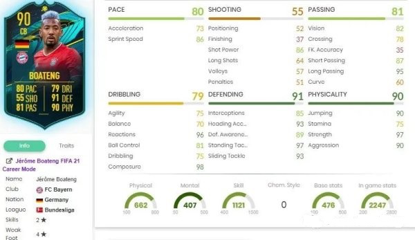 Detailed Stats on Jerome Boateng Player Moments in the game of FUT 21
